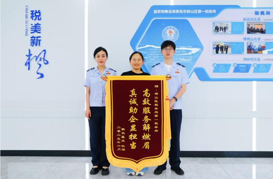 “真心感谢你们的辛苦付出,崂山区税务局的优质服务真的解决了我们的燃眉之急!”近日,纪女士向崂山区税务局第一税务所送上一面写着“高效服务解燃眉 真诚助企显担当”的锦旗,对工作人员及时办理企业急难愁盼业务表达了感谢和赞扬。
